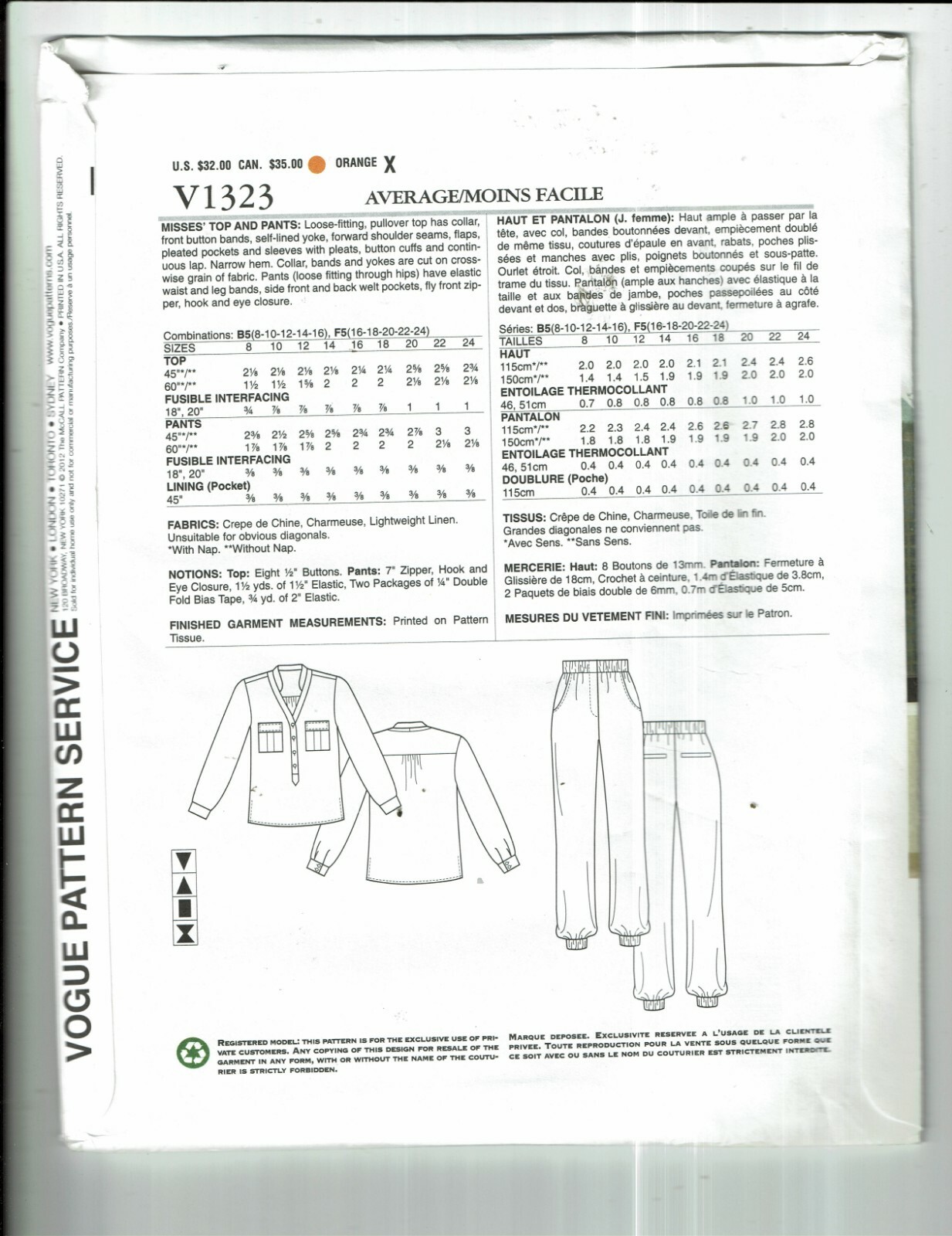 Vogue V1323 Rachel Comey Top Pants W Variations Pattern Size 8 16 Or 16 24 Uc Ebay